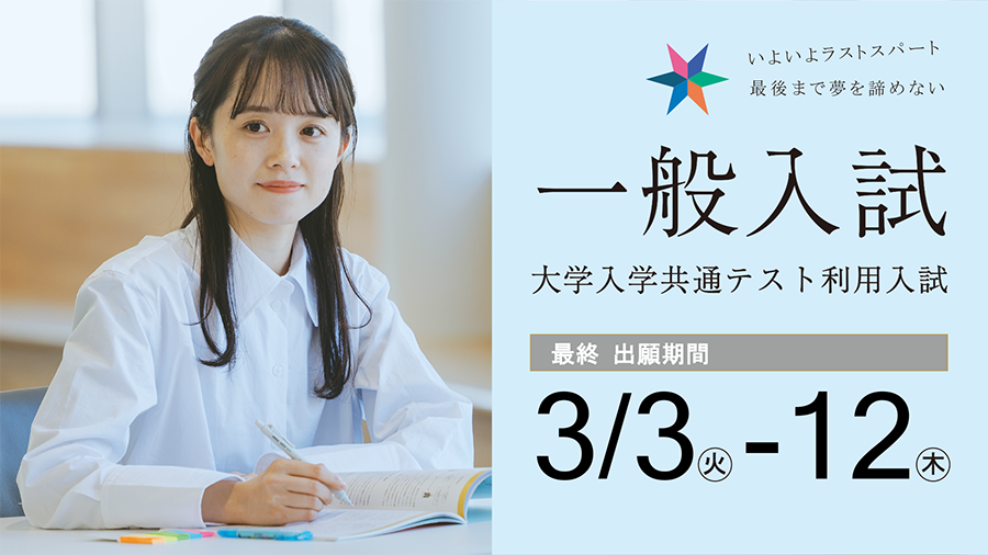 [一般入試・共通テスト利用入試 最終] 3/12(木)まで出願受付 [今年度最後の入試です] -