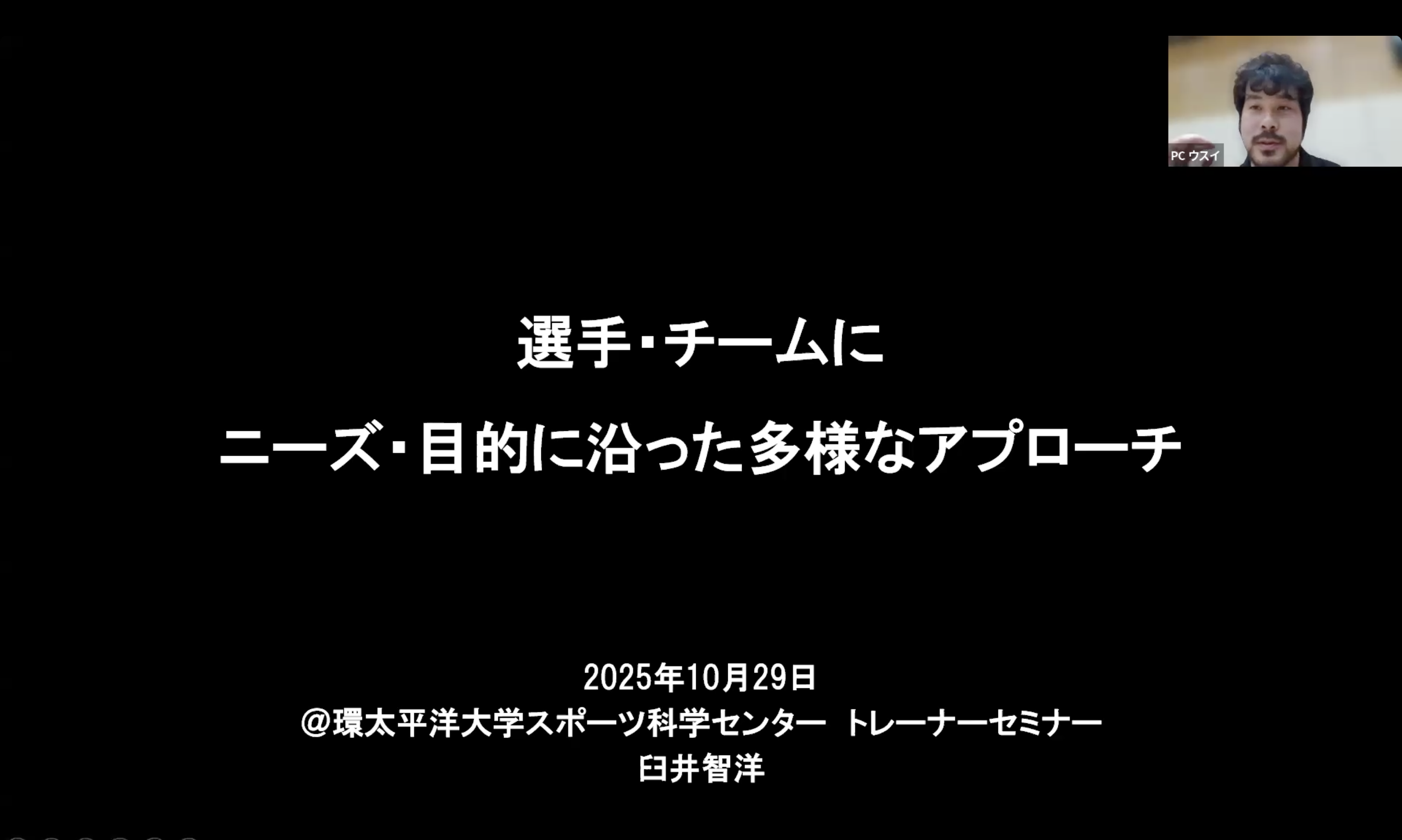 トップアスリートから育成年代まで様々な競技のアスリートを支える臼井氏によるS&Cコーチとして必要な考え方とキャリア形成についてのご講演