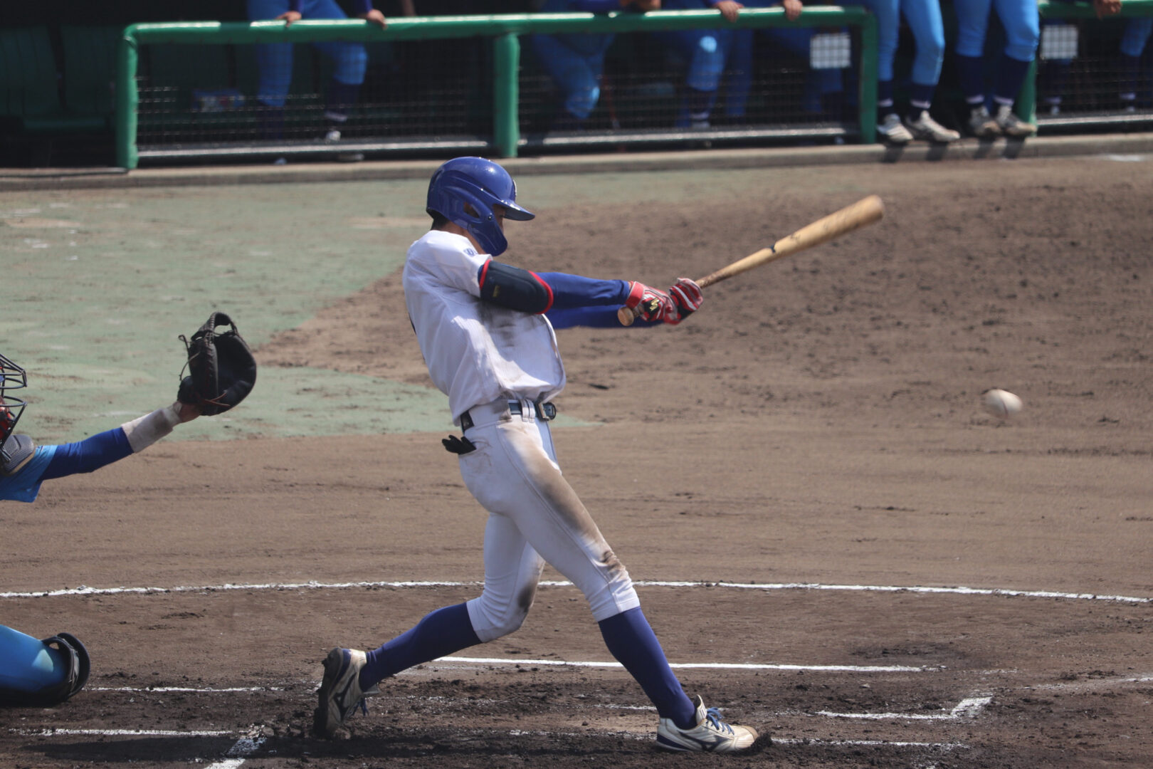 九回裏、一点を追いかける二死二塁から左前同点適時打を放った砂田(崇徳①)