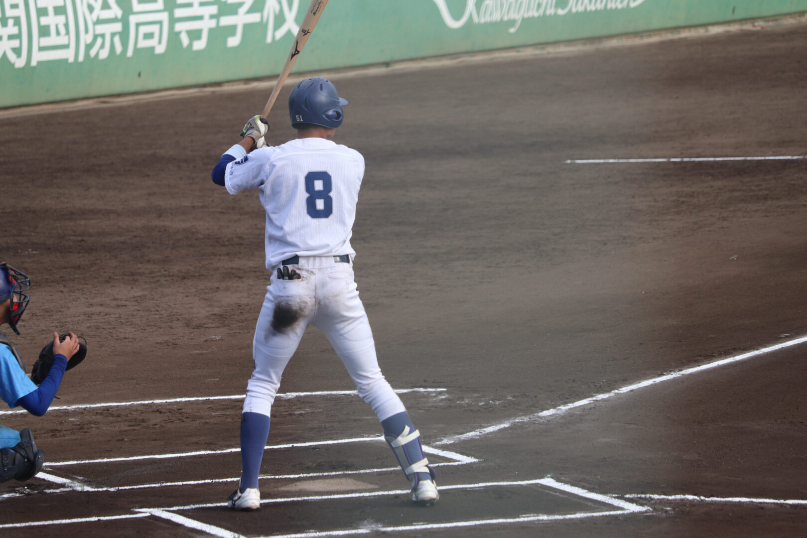 六回裏代打で出場、四球を奪い二打席目には左前打を放ったリーグ戦初出場の山口(九国大附属①)