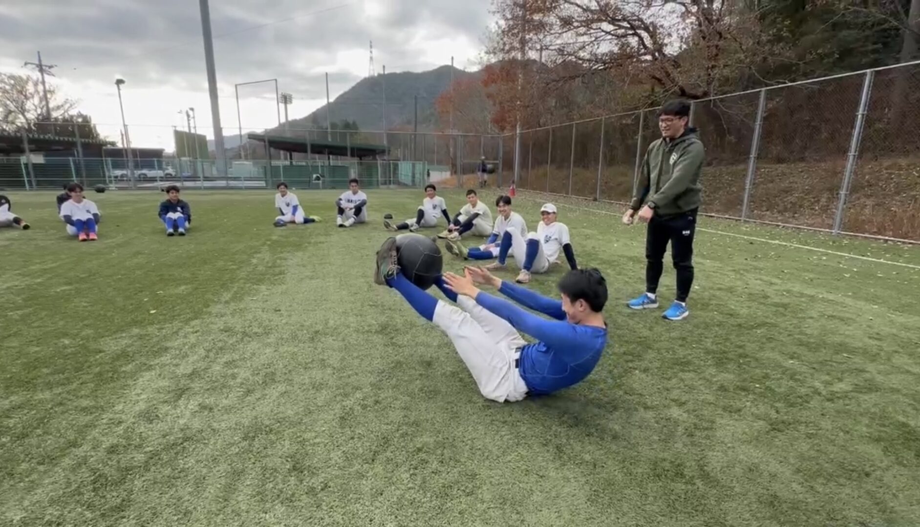 投手を中心に、ピッチングフォームの確認をはじめとした技術的なご指導やトレーニングを教えて頂きました。また、球志館にてミーティングを行い、佐竹さんからご自身の経験談に加えて、野球の技術面やメンタル面についてもお話を伺いました。