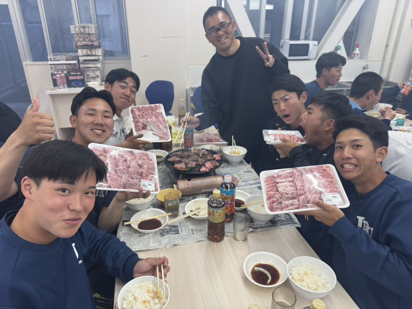 弊部OBの服部匠さん(15期生)が勤められてます、 医療法人仁康会小泉病院の理事長 谷本 雄謙様より、お肉50kgをいただきました。 誠にありがとうございます。 選手全員で焼肉を行い、美味しいお肉は、白米との相性が良くいつも以上に白米を多く食べる事が出来ました。 リーグ戦残り4節をチーム全員で勝ち切り、谷本 雄謙理事長にいい報告が出来るように練習に励んで参ります。