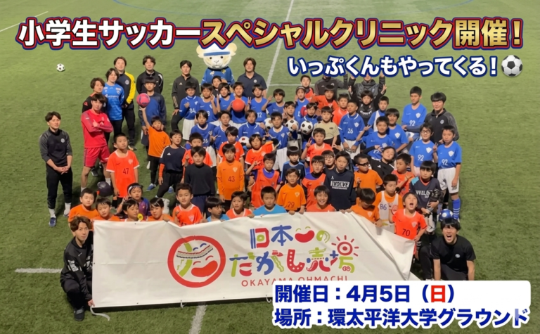 2026年4月5日(日)、環太平洋大学ラグビーサッカー場にて、岡山県内の小学生を対... -