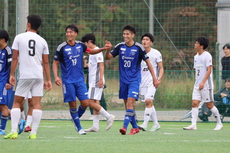 すでに3試合を残して優勝を決めていた環太平洋大学は、最終節で昨年・一昨年の覇者である広島大学と対戦。前半に2点を先行し、後半も1点を追加。3-1で勝利を収め、有終の美を飾りました。