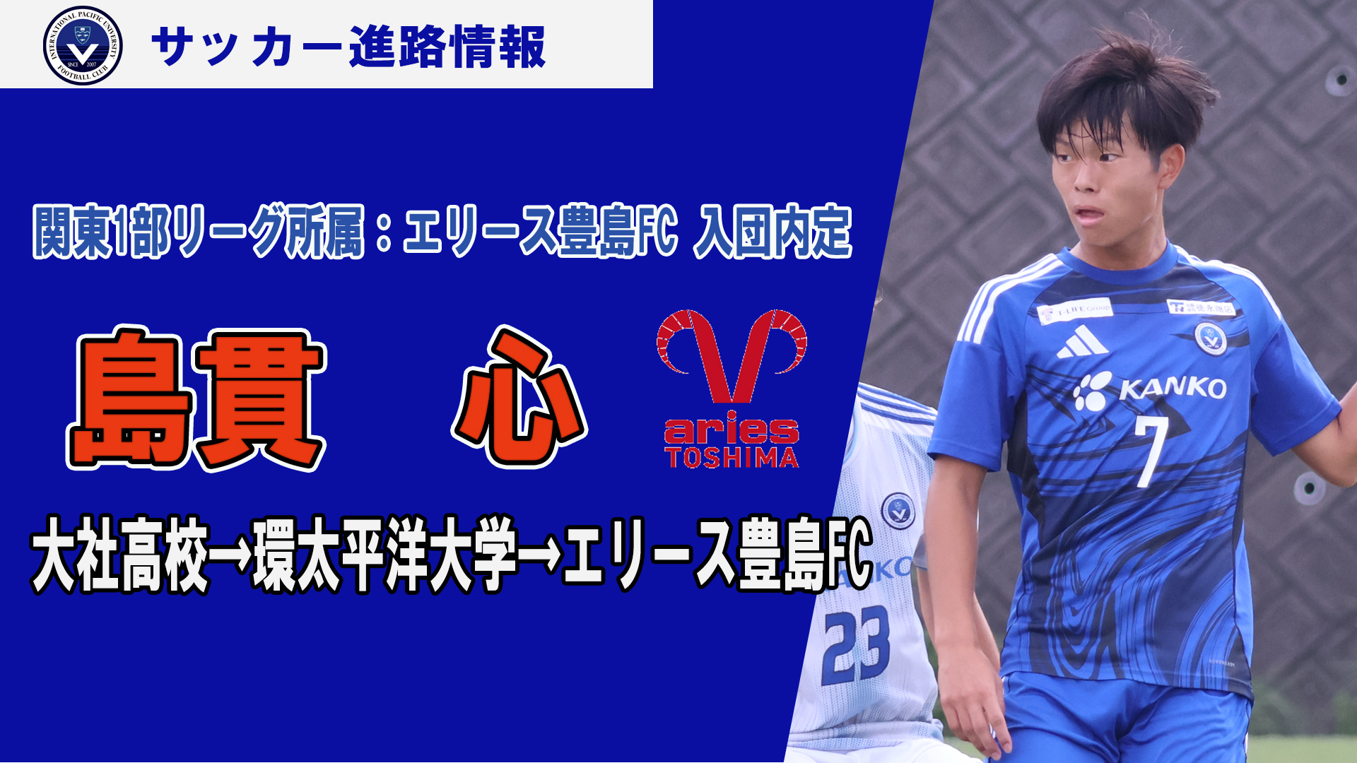 島貫心(4年/大社高校出身)関東1部リーグ エリース豊島FC 2026シーズン入団内定のお知らせ