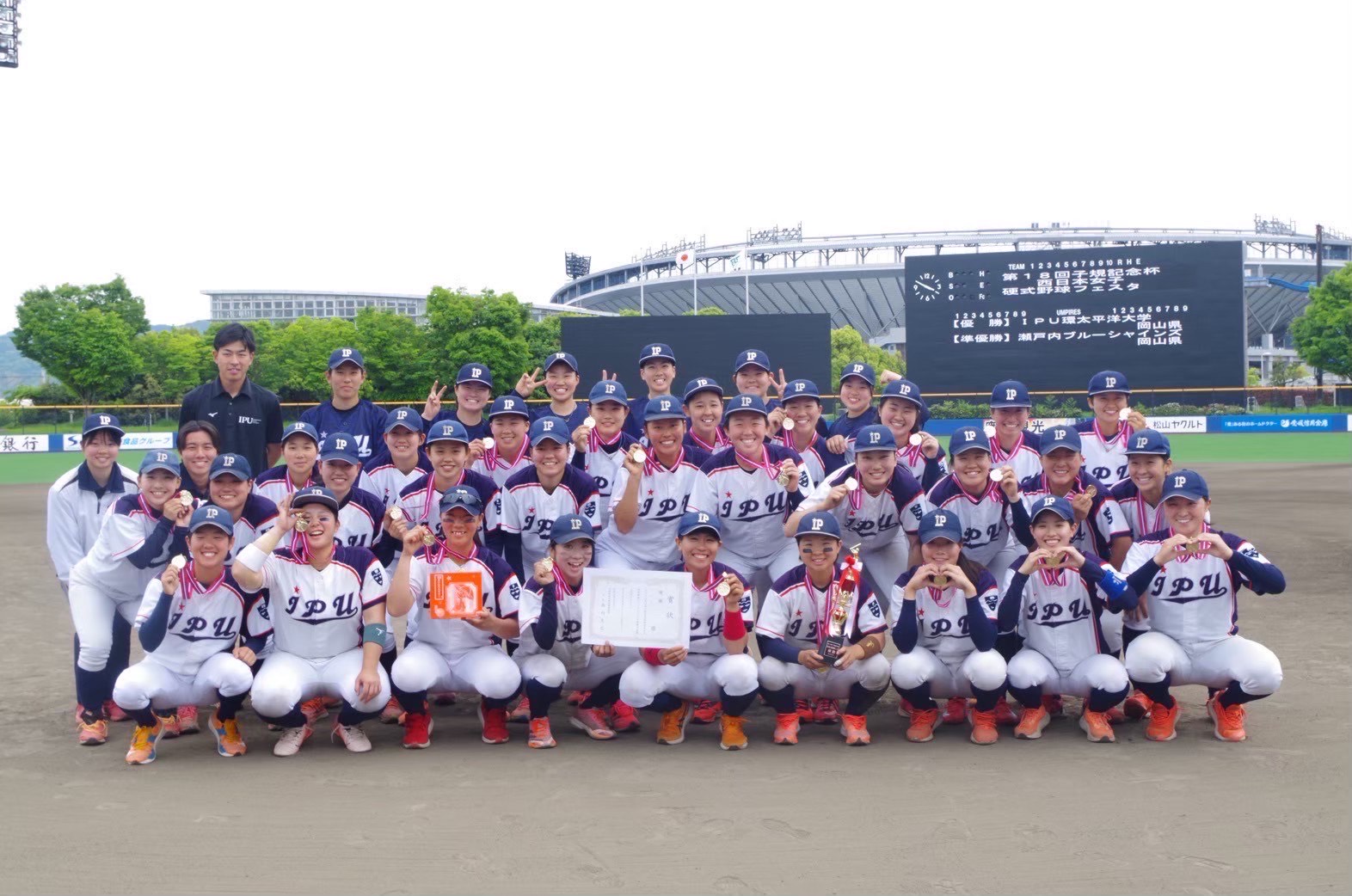 1回の表、I P U の攻撃。1番黒木がレフトフライに倒れるも、2番岡田が左中間に抜ける強い打球を放ち、ランニング本塁打で先制。3番千見寺がセカンドゴロに倒れ、2アウト。4番國井のレフトライン線に抜ける2ベ塁打、5番生内のサードのエラーで出塁、続く6番丸山がレフト前の2点タイムリーヒットを放つ。