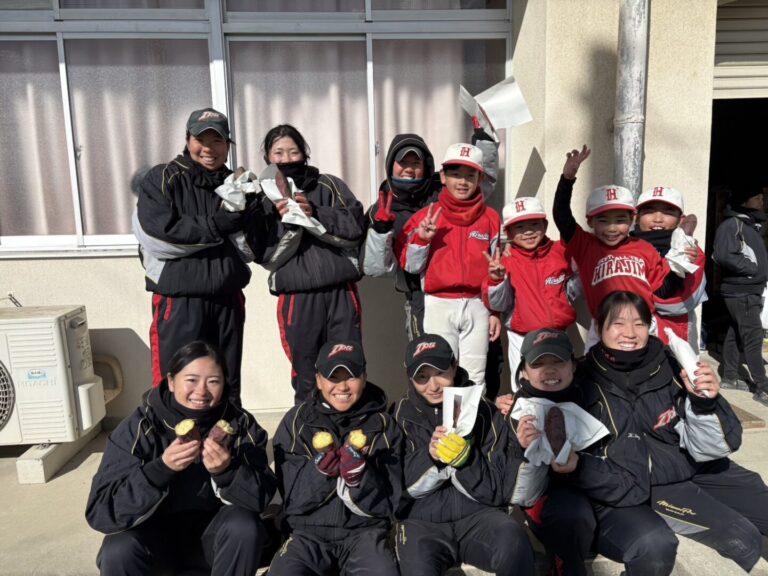 今日は平島小学校で講習会を行いました!!練習ではダンスや鬼ごっこでしっかり体を温め、基礎的なことを中心に行いました!小学生が楽しくソフトボールをする姿を見て、私たちも嬉しく、お互いに良い時間を過ごすことができました!その中で気づくことも多くあり、とてもいい経験となりました。また、練習後にとても美味しい豚汁と焼き芋をご馳走になりました!!平島小学校のみなさん、ありがとうございました!