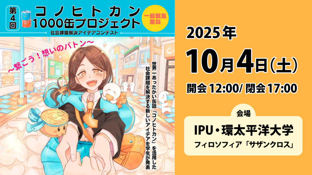 【現代経営学科】10/4 第4回「コノヒトカン1000缶プロジェクト社会課題解決アイデアコンテスト」開催-IPUから“ひとり親家庭応援プロジェクト”発信