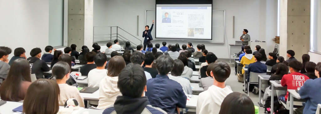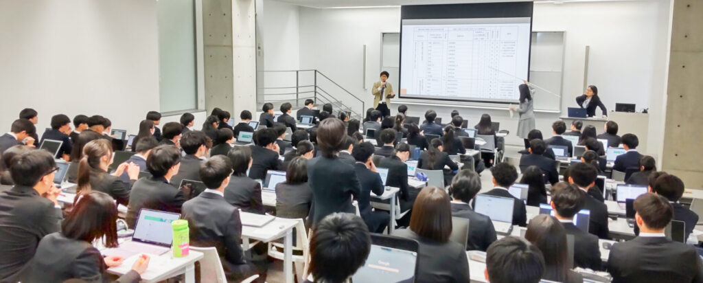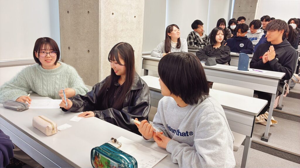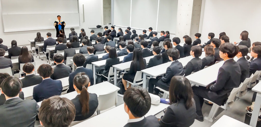 午前はクラス発表や履修登録の説明が行われ、大学での学びのイメージがより具体的になってきました。