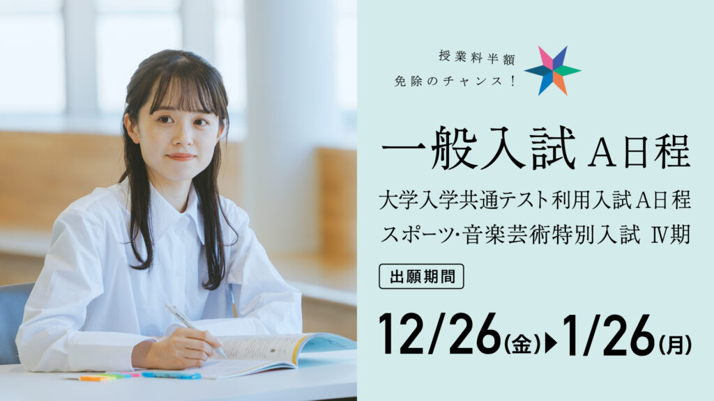 ホーム お知らせ[一般入試A・共通テスト利用入試A] 12/26(金)より出願受付開始 [奨学金対象入試]