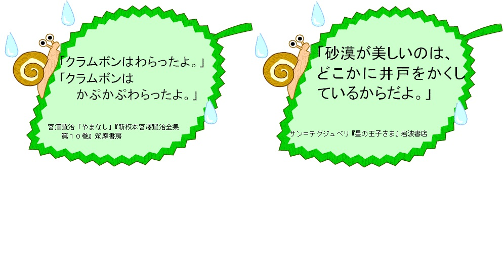 「44の名言」を、図書館のあちこちに貼ってあります。お気に入りの言葉を見つけてみてください。