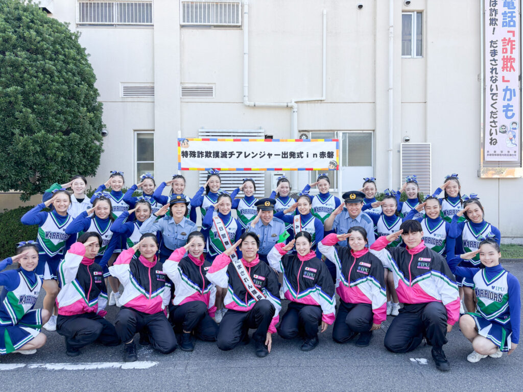 10月17日(金)、赤磐警察署で開催された「特殊詐欺撲滅に向けた推進強化の出発式~特殊詐欺撲滅チアレンジャーinあかいわ~」に、IPU・環太平洋大学体育会のダンス部・チアリーディング部の学生が参加しました。