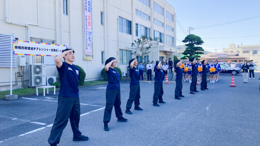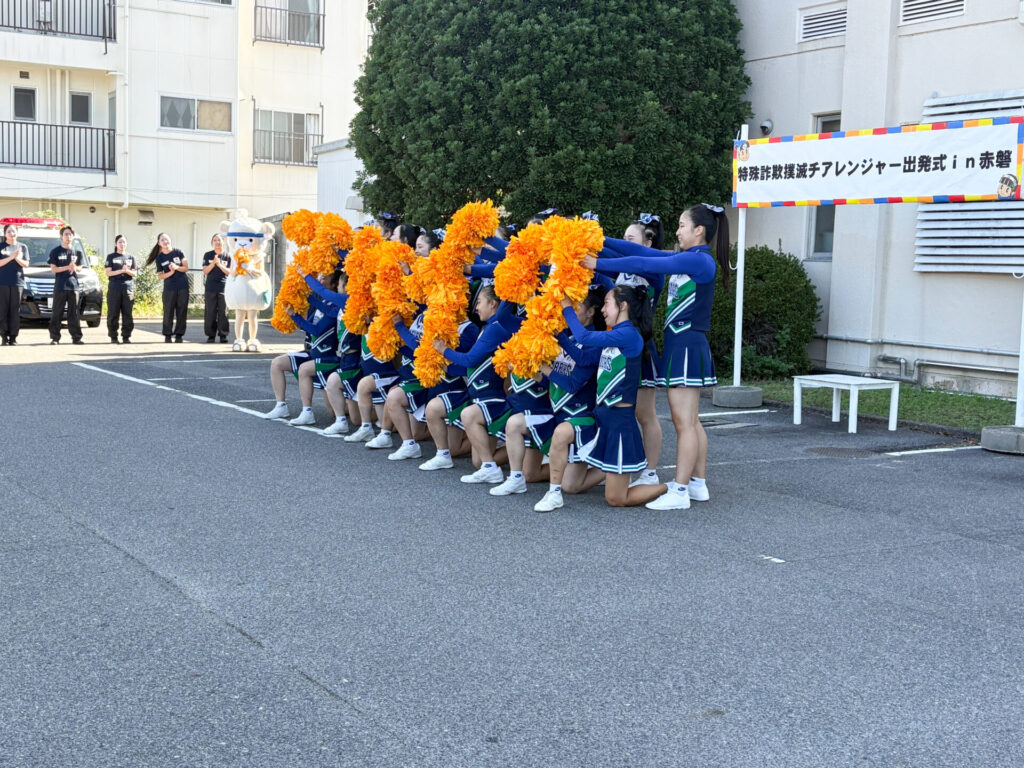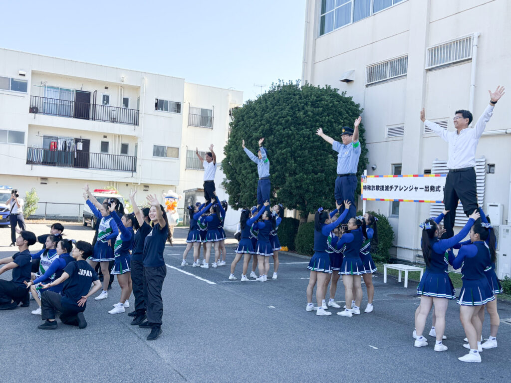 10月17日(金)、赤磐警察署で開催された「特殊詐欺撲滅に向けた推進強化の出発式~特殊詐欺撲滅チアレンジャーinあかいわ~」に、IPU・環太平洋大学体育会のダンス部・チアリーディング部の学生が参加しました。