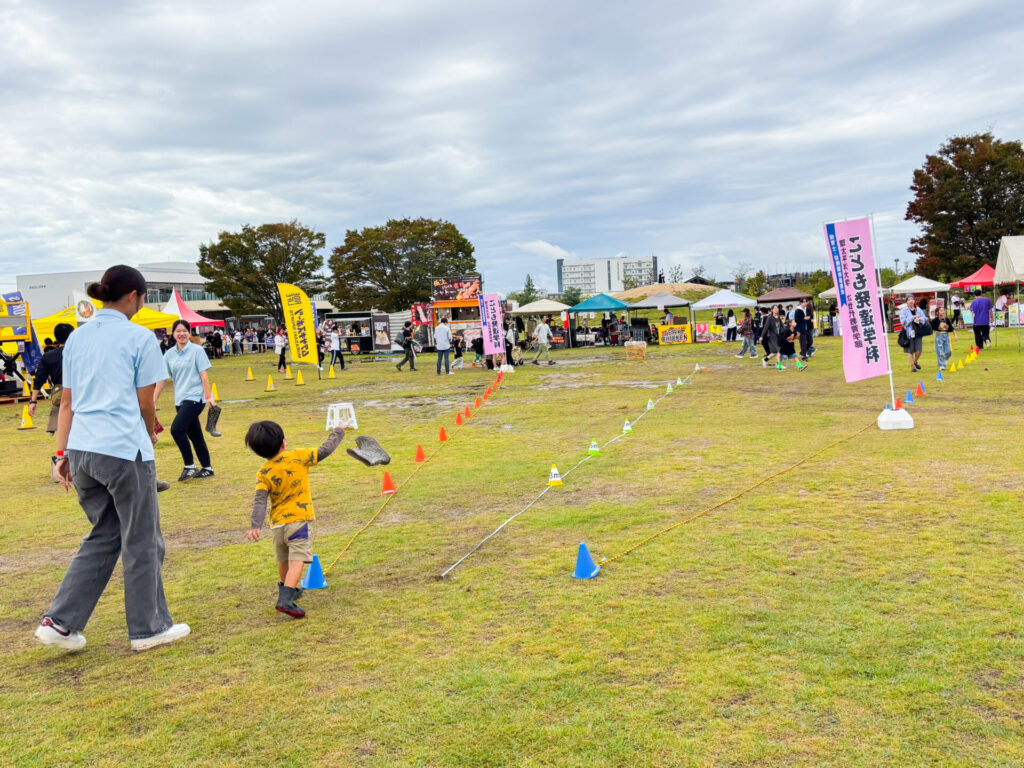 また、今回のイベント出展に携わった学生は、地域の子どもや保護者との交流を通して、遊び場づくりにおける環境構成や安全管理、声かけの工夫などを体験的に学び、子どもの発達や遊びの意義を実感する貴重な機会となりました。今後もこども発達学科では、地域と連携しながら実践的な学びを深めていきます。