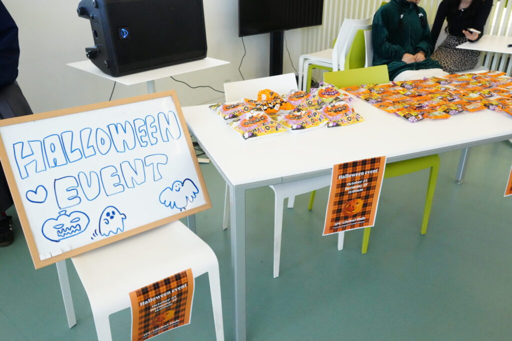 IPU・環太平洋大学にこのたび新たな国際交流拠点 「IPU Global Hub」 が誕生したことを受け、2025年10月23日(木)、そのキックオフを兼ねたハロウィーンイベントが開催されました。会場はハロウィーンの装飾で彩られ、日本人学生と留学生が笑顔で交流する温かい雰囲気に包まれました。