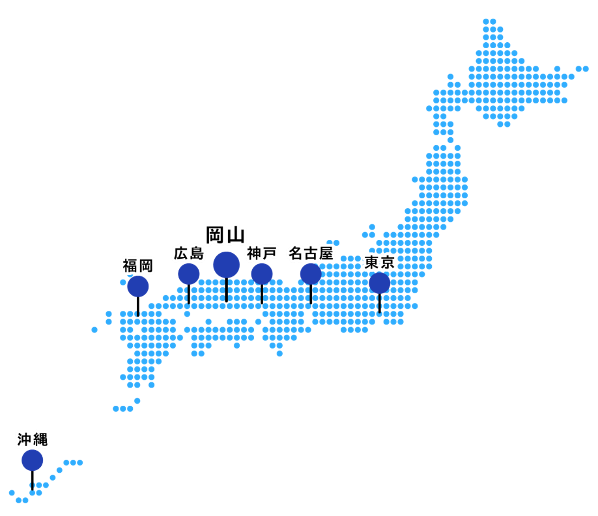 「学校推薦入試前期」「スポーツ・音楽芸術特別入試Ⅱ期」「商業・農業・商業科特別入試」では、東は東京から南は沖縄まで、全国で7つのエリアの主要都心部に入試会場を設置。試験会場ごとの定員はありません。いずれの会場も公共交通機関でもアクセスしやすい便利な場所です。地方在住の受験生に対して、入試に関わる費用負担の軽減をサポートしています。「地域特別入試(沖縄県)」では、沖縄と岡山で受験可能です。