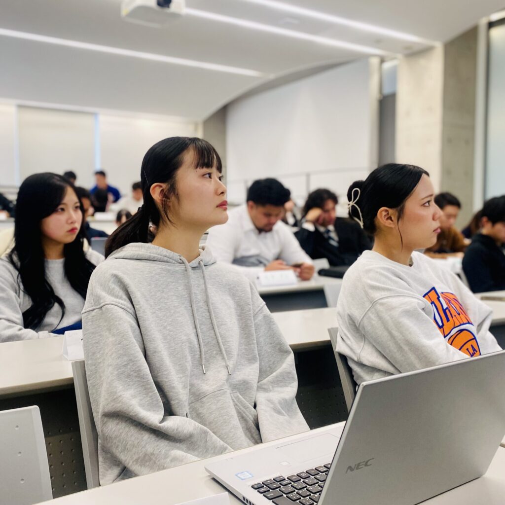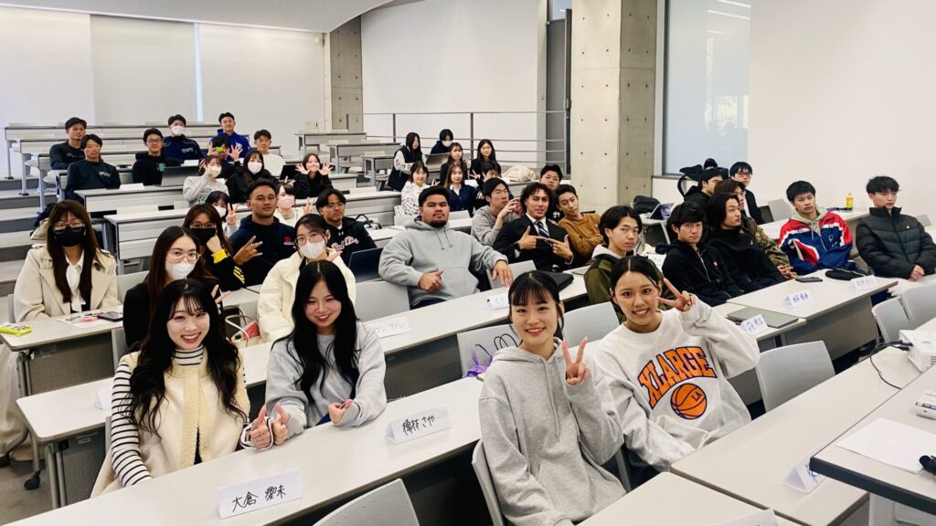 今年度は、ベトナム・中国・トンガ・ニュージーランド・オーストラリア出身の留学生も参加し、多様なバックグラウンドをもつ約50名の学生が受講。9つのチームに分かれ、社会課題の解決や異文化交流をテーマに、独自のブランド構築に取り組んでいます。