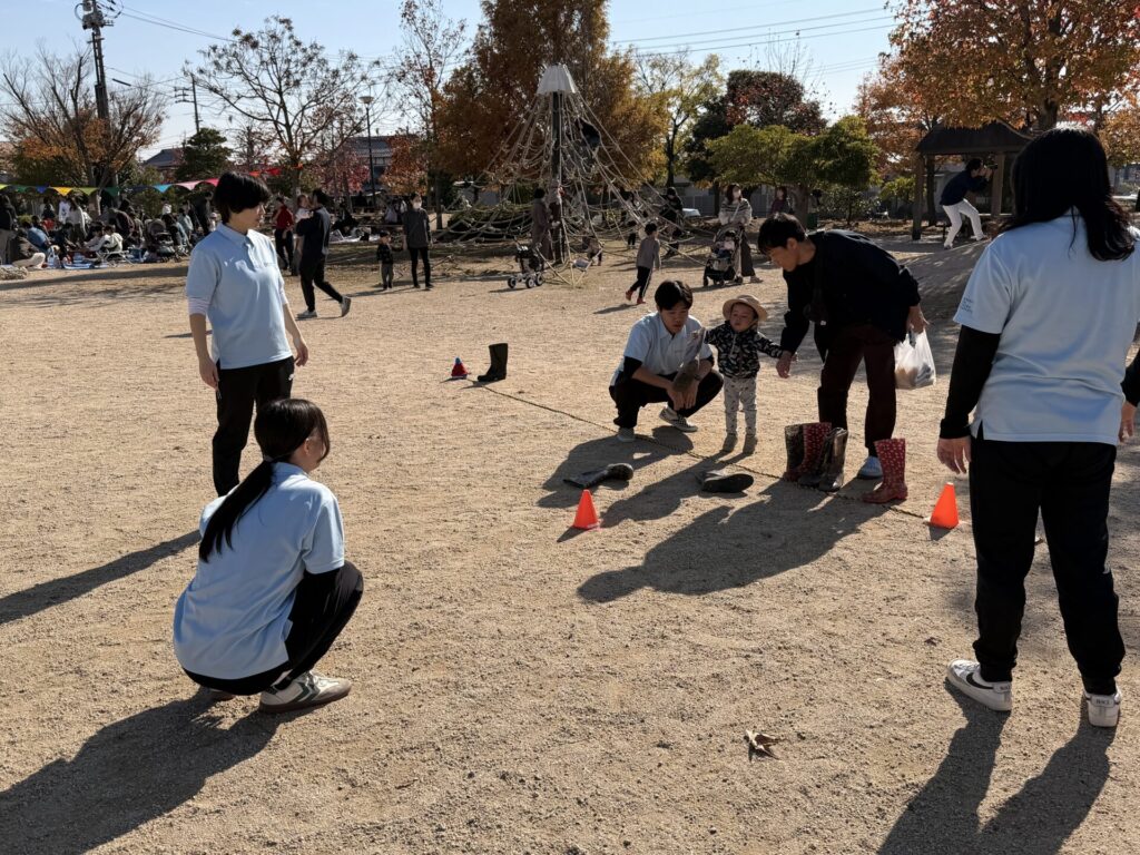 【こども発達学科】長靴投げから秋のしおりづくりまで-IPU学生が「あそびひろばin東区」で多彩な遊びを展開