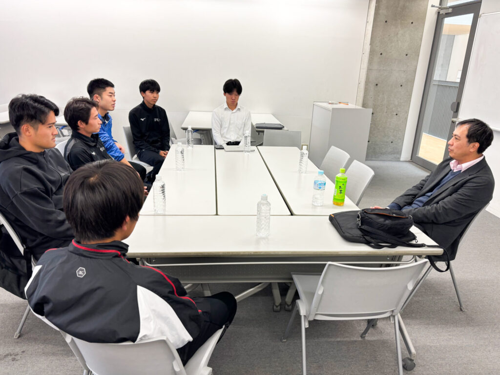 2025年11月26日、体育学科1年生、3限競技スポーツ科学科2年生向けに、スポーツ科学センター客員講師の中野吉之伴氏(ドイツサッカーA級指導者ライセンス、サッカーライター、代表著書:「ドイツの子どもは審判なしでサッカーをする」)による特別講義を実施しました。この講演において、中野氏はスポーツ環境における「安心安全基本的人権」の確保を最重要視し、日本の指導現場における課題を指摘しました。また、ドイツのスポーツ政策や、ヨーロッパ諸外国などの事例を紹介しながら、選手の主体性・自発性の育成、そしてプロキャリア後のセカンドキャリアを見据えた人間性の成長の必要性を熱く説きました。講義後のIPUサッカー部学生コーチ達との座談会では、現場での課題解決に向けた具体的な提言が交わされました。