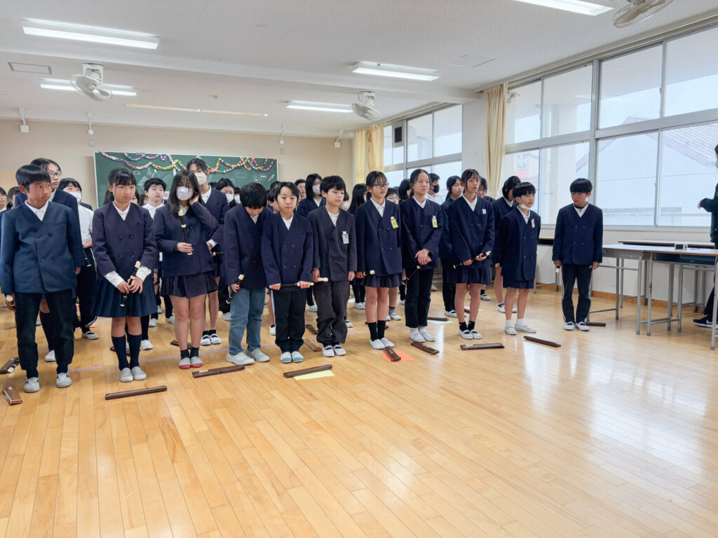 2025年12月18日(水)に、津山市立高野小学校の全校児童が集めた約14kgの文房具を贈呈していただく贈呈式が同小学校でおこなわれました。5年生の児童が自分たちで贈呈式を進行し、歌や演奏も披露してくれ、感動的な式典となりました。