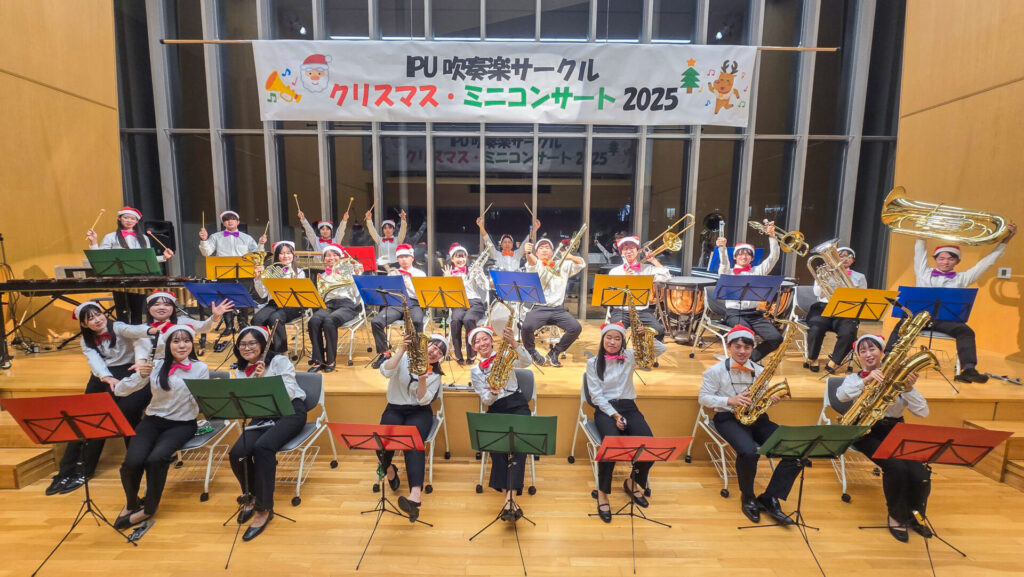 2025年12月17日(水)、18時15分より本学ディスカバリー・プレゼンテーションラボにて、IPU吹奏楽サークル&こども発達学科有志学生による学内クリスマスコンサートを開催しました。