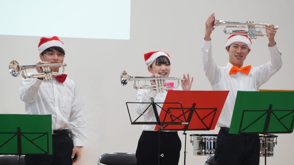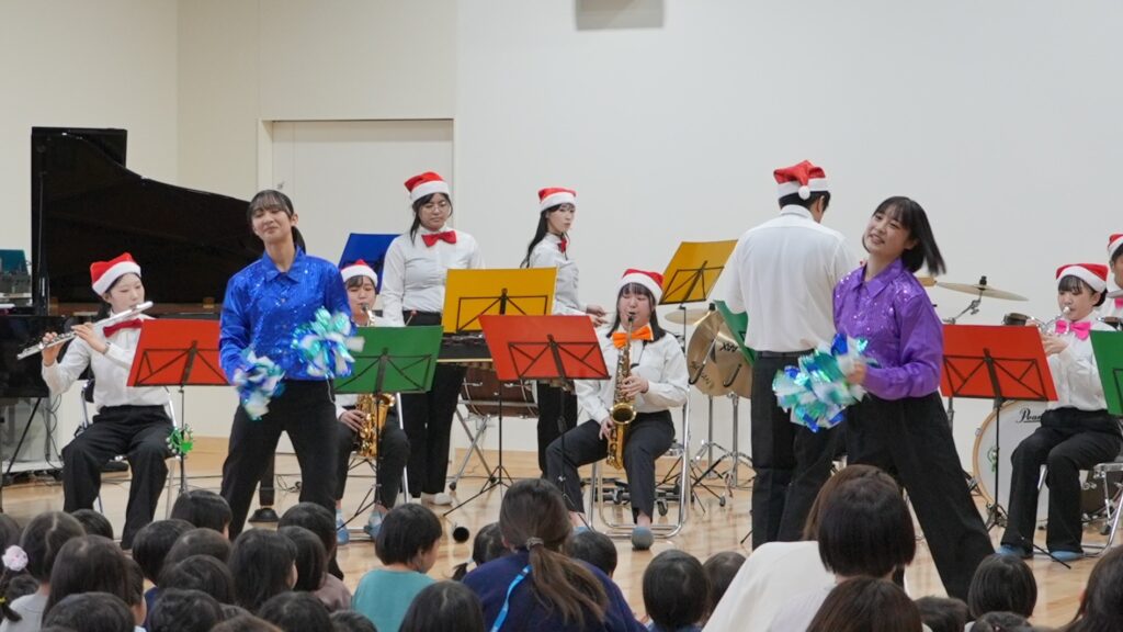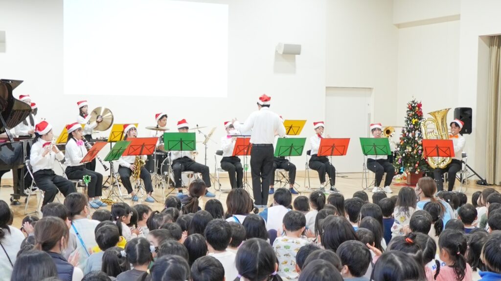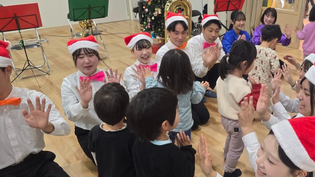 続く器楽合奏では、クリスマスメドレーや「小さな世界」を披露し、園児たちは手拍子をしたり、一緒に歌ったりしながら、音楽を全身で楽しむ様子が見られました。