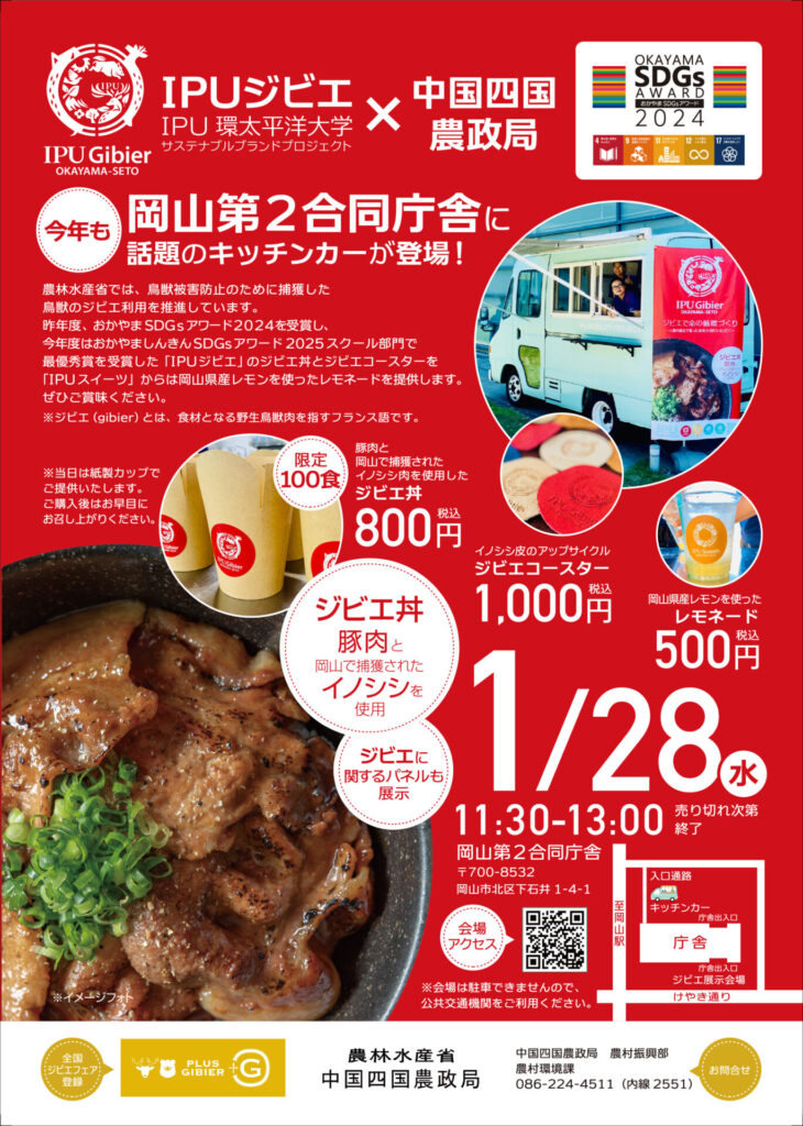 なお、2026年1月28日には、中国四国農政局主催のジビエフェアへの出店が決定しています。昨年の好評を受け、2年連続での参加となります。ぜひご来場ください。