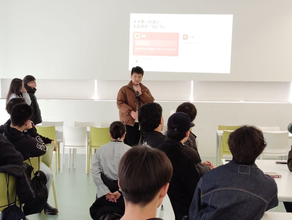 当日はまず、中国とベトナムそれぞれの旧正月の過ごし方や文化的背景についてのプレゼンテーションが行われ、参加者は各国の文化の違いや共通点に興味深く耳を傾けていました。
