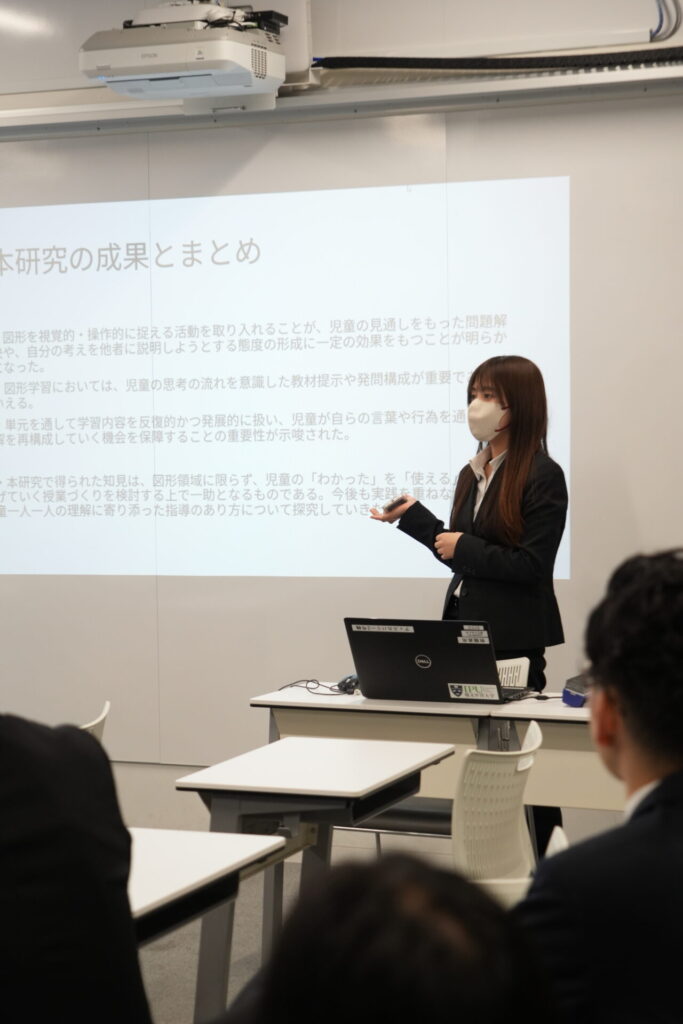 発表では、授業づくりや学習意欲、発問の工夫など、教育に関わるさまざまなテーマが取り上げられました。どの研究も中間発表から丁寧に改善を重ねており、資料のまとまりや調査の深まりがよく伝わってきます。研究が少しずつ形になっていく様子を感じられ、静かながらも充実した空気が会場に広がっていました。