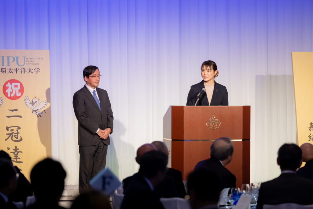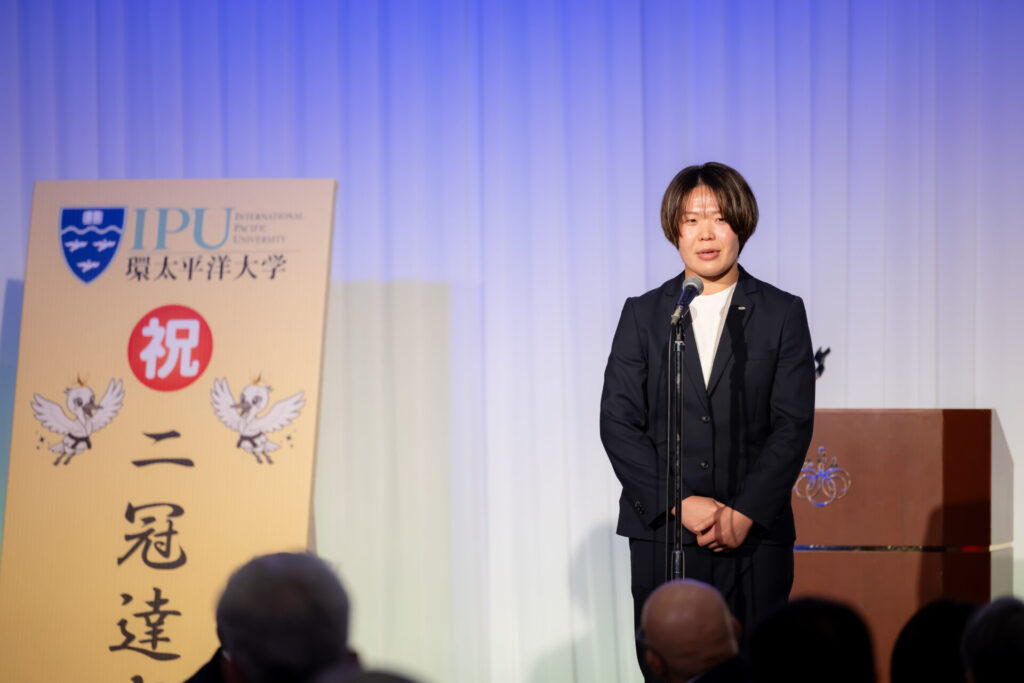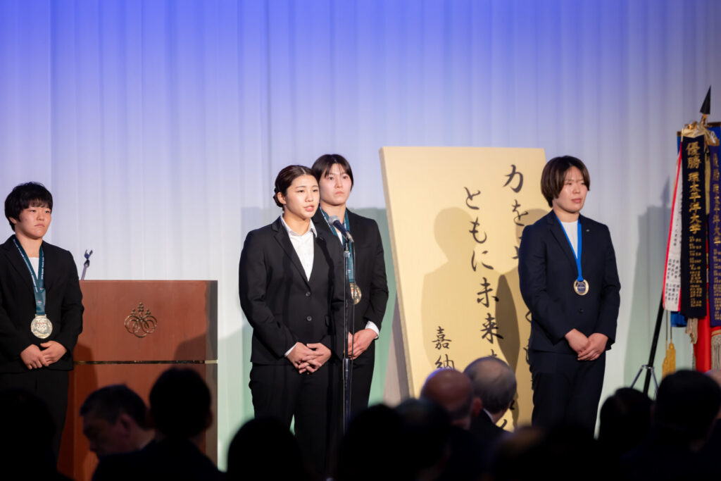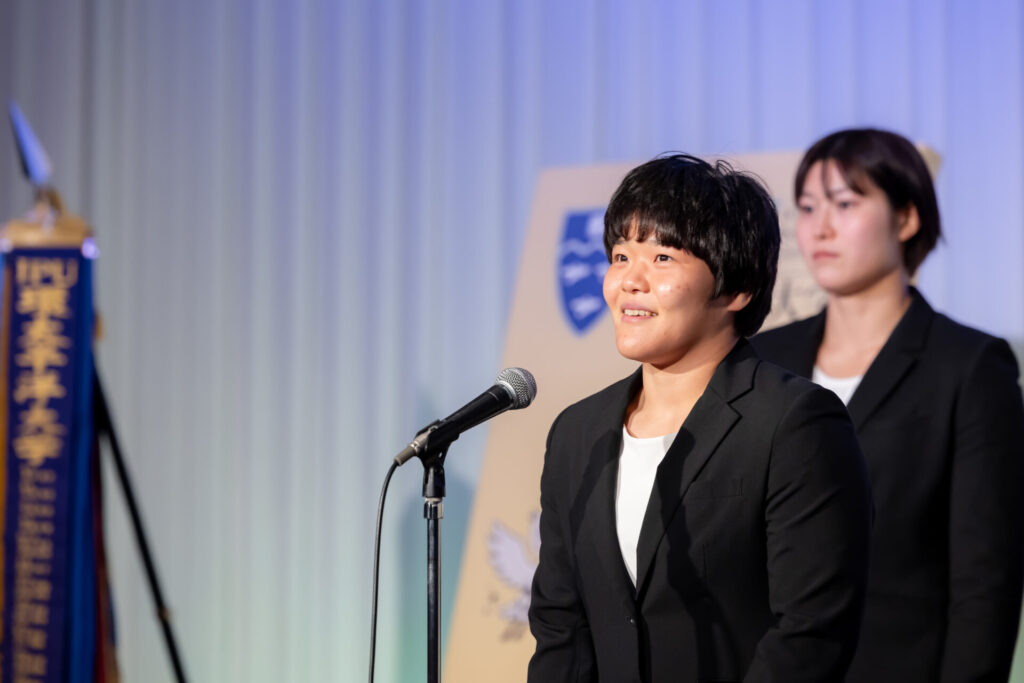 その言葉は、未来を担う後輩たちの心に深く響き、会場は温かい拍手に包まれました。本学のスポーツ教育の成果とともに、世代を超えて受け継がれる挑戦の精神を感じさせるひとときとなりました。