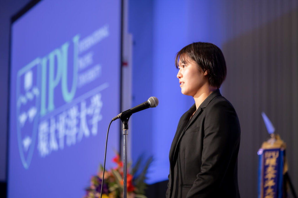 式典では、卒業生も登壇し、それぞれの所属先とともに国際・国内大会での活躍を報告しました。