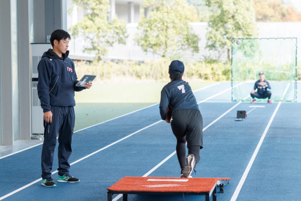 私は、野球を中心としたベースボール型球技におけるバイオメカニクスやアナリティクスを専門に研究しています。特にトラッキングデータを活用し科学的視点からパフォーマンスを分析しています。機器を正確に扱い収集したデータを読み解く力を身につけます。データに基づく理解は、競技力向上に直結する学びが得られます。