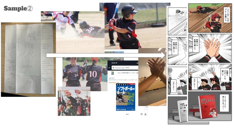 - 瞬時の修正:「ルールブックの厚みを増やしてほしい」「セリフを変更したい」といった指示を入力すると、わずか数分で画像が再生成されました。