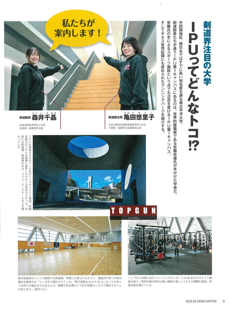 剣道専門誌として歴史のある月刊誌『剣道日本』(1976年創刊)の2026年5月号(No.592)にて、本学女子剣道部および所監督が特集されました。