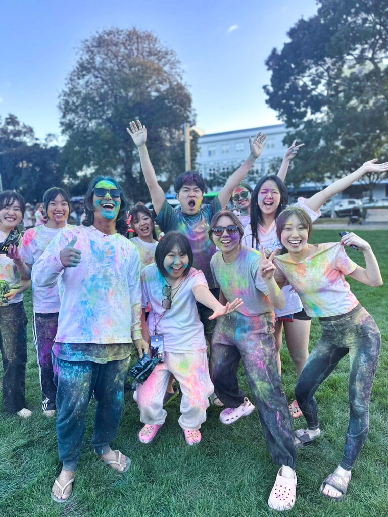 そのほかにも、参加者同士が色の粉を掛け合いながら交流を深める「カラーフェスティバル」に参加し、学生たちは現地ならではの一体感や楽しさを味わいました。また、ニュージーランドの首都ウェリントンでは、学生たちがそれぞれ観光計画を立て、自由に散策を行いました。自分たちで考えて行動する経験も、海外で学ぶ上での大切な学びの一つとなりました。