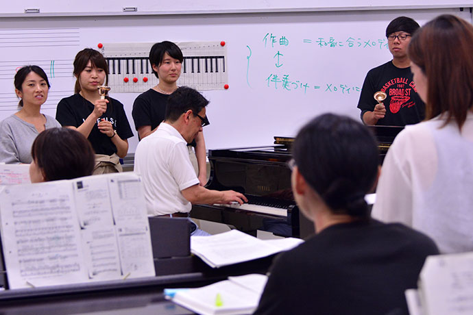30台のピアノを備えた音楽室と、少人数でできるグループレッスン室、ひとりで練習できる独習室も設置されています。