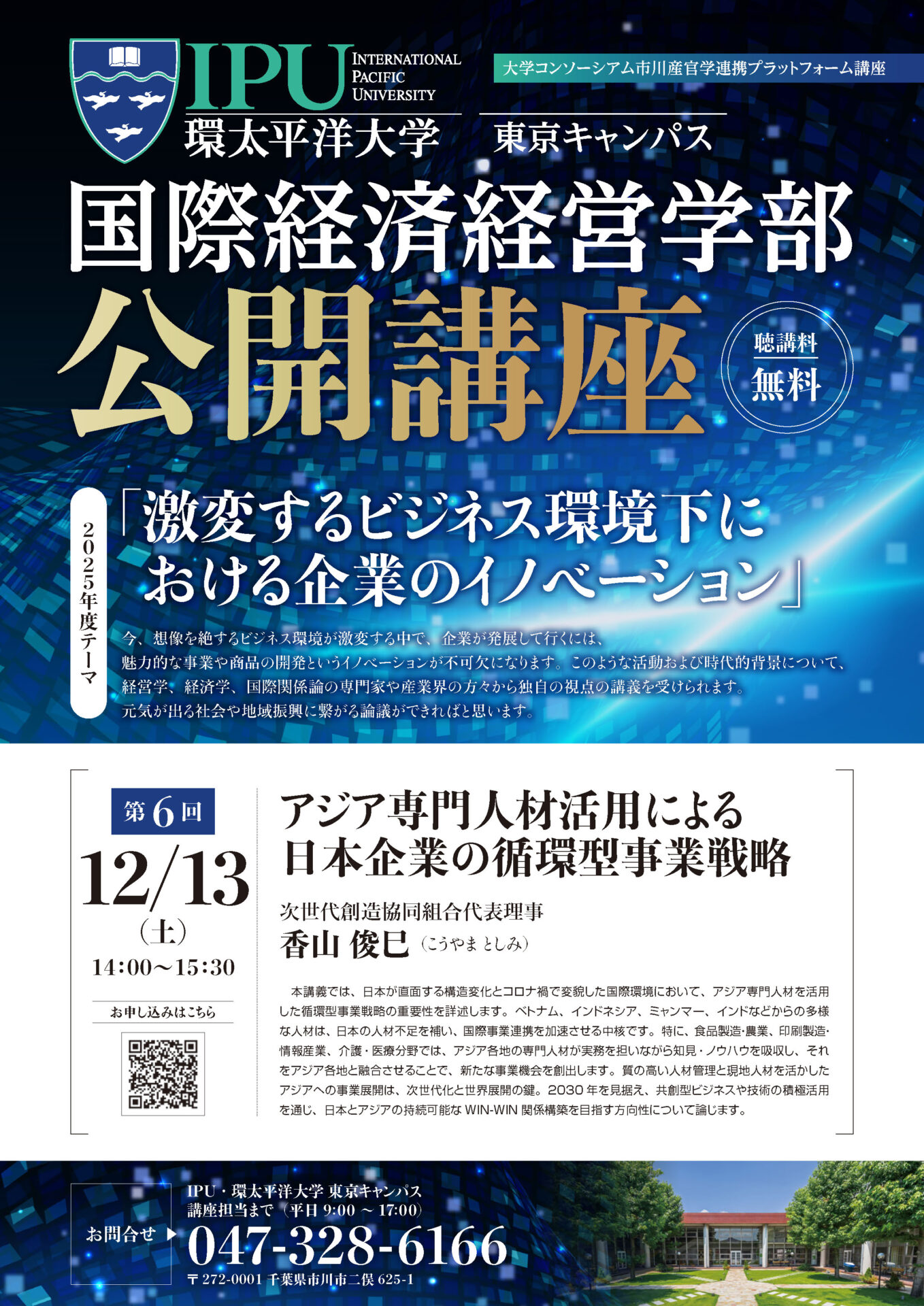 2025年6月よりIPU・環太平洋大学 国際経済経営学部 公開講座を開始しました