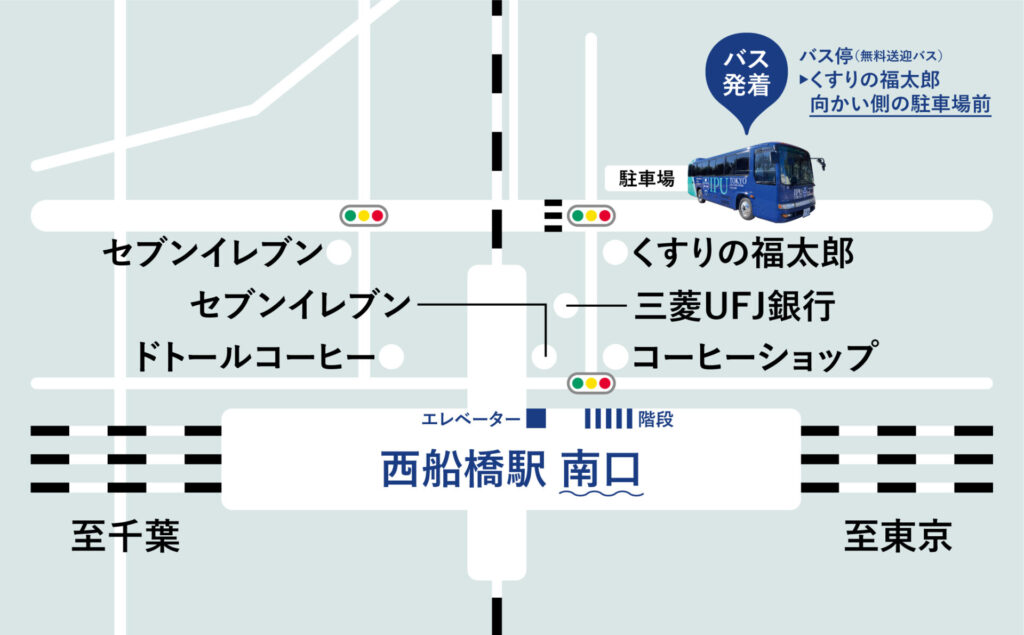 ・「西船橋駅」(南口)からのスクールバスをご利用いただけます。